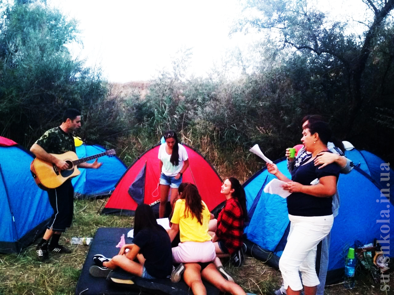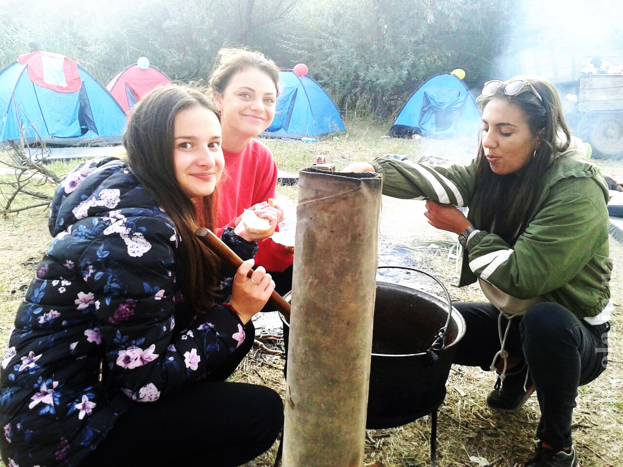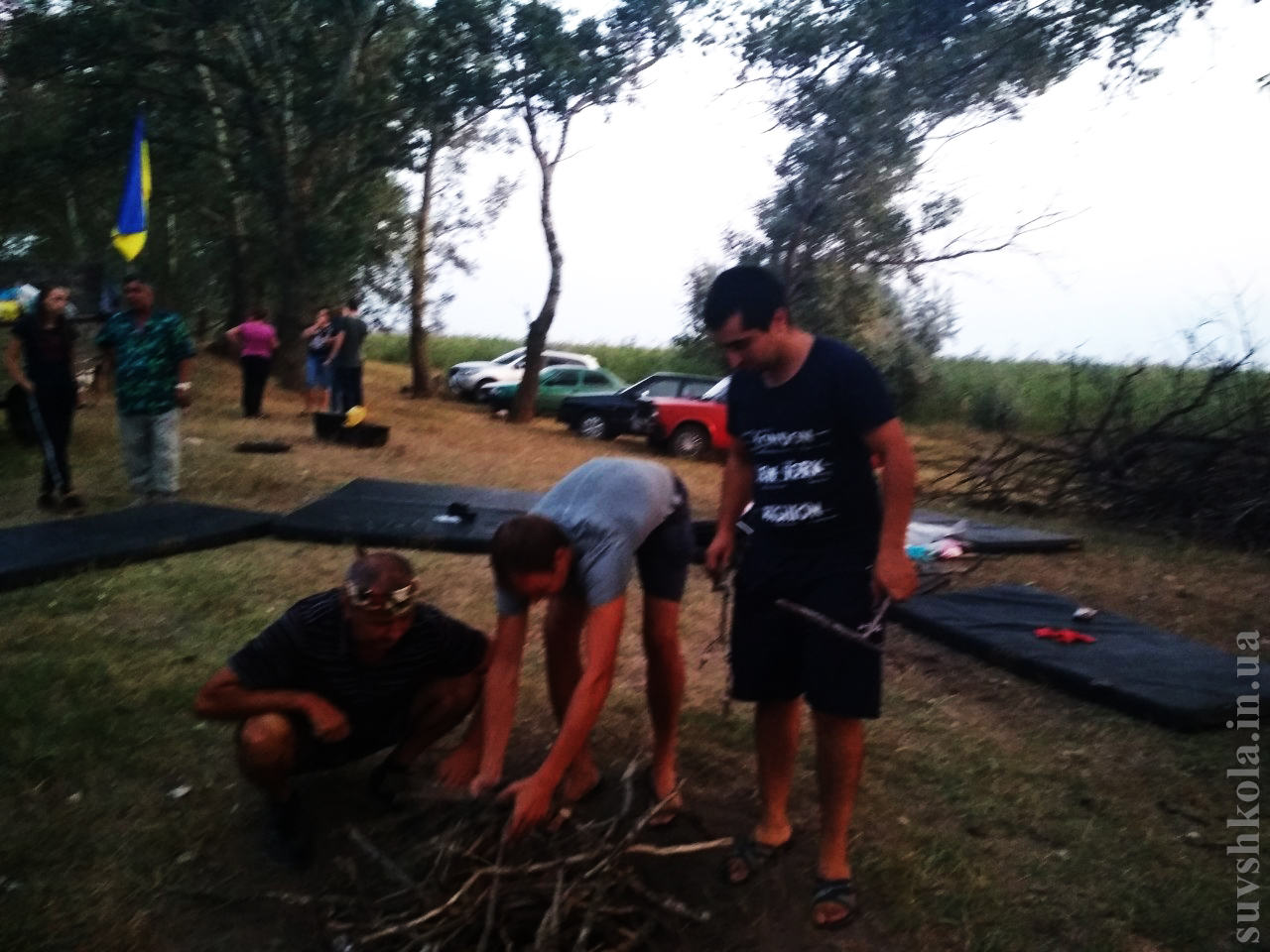 Прибыв на место все сразу принялись за дело: кто-то пошел собирать хворост, кто-то- помогал родителям и учителям , а кто-то разбивал палатки.
