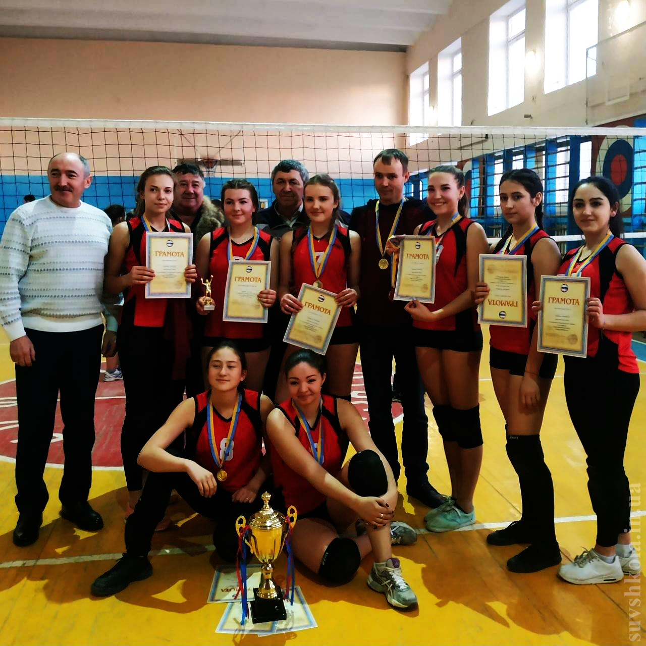 В воскресенье 10 февраля состоялись районные соревнования между женскими командами по волейболу на базе спортзала Суворовской школы. В команде по волейболу от пос. Суворово брали участие и наши ученицы: Товстуха Мария, Чапкина Надежда, Рашкова Елена, Тьо Татьяна, Пейчева Татьяна,Балабан Юлия.Помимо них в команде учавствовали Кирева Елена и Лапатан Оксана. Болельщики активно поддерживали команду нашего поселка,вдохновляя ее на пути к победам! На пути к первому месту легко и непринужденно были обыграны Матроска (2-0), Ст. Некрасовка(2-0). Упорная борьба была со сборной Каменки, но тем не менее и эта команда была обыграна со счетом 2-0. В борьбе за первое место в финале схлестнулись Суворово и Кирнички. После зрелищной, упорнейшей игры со счетом 2-0(25-23; 24-26) выиграла команда Суворово и заняла 1-е место в районе, с чем команду и их тренера Куртева Сергея Михайловича поздравляем!!! Лучшим игроком сборной Суворово признан легионер из Сараты Кирева Елена.